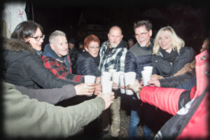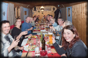 Wieder mal zusammen Silvester feiern, das ist doch richtig super. Start 18:30 draussen am Feuer, mit etwas vorglühen, natürlich mit Glühwein. So gefühlt war wohl ganz Fenkrieden auf den Beinen und im Restaurant zum Nachtessen angemeldet. Wir 17 waren im sogenannten «Erwin’s Alphüttli» ein liebevoller, renovierter, rustikal gestalteter Bauwagen, welcher schön flauschig und heimelig für uns dekoriert war.
